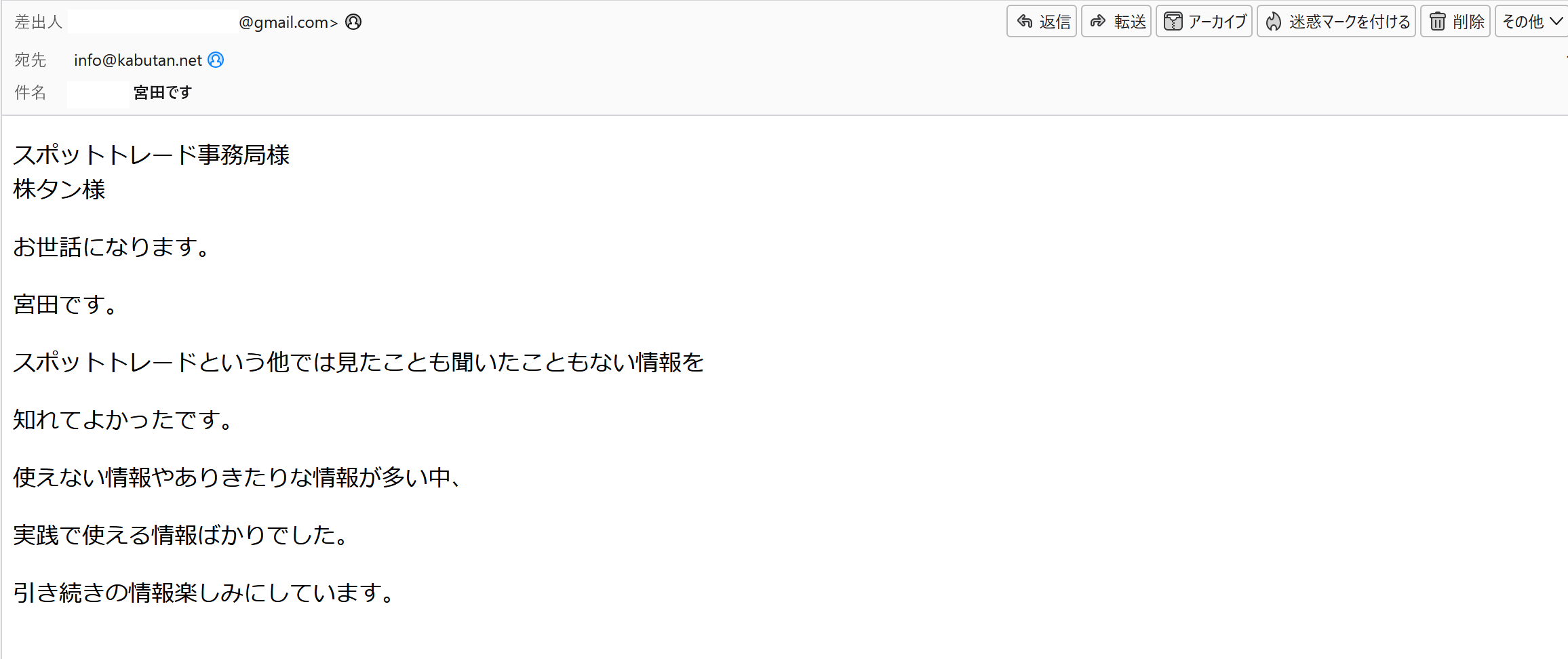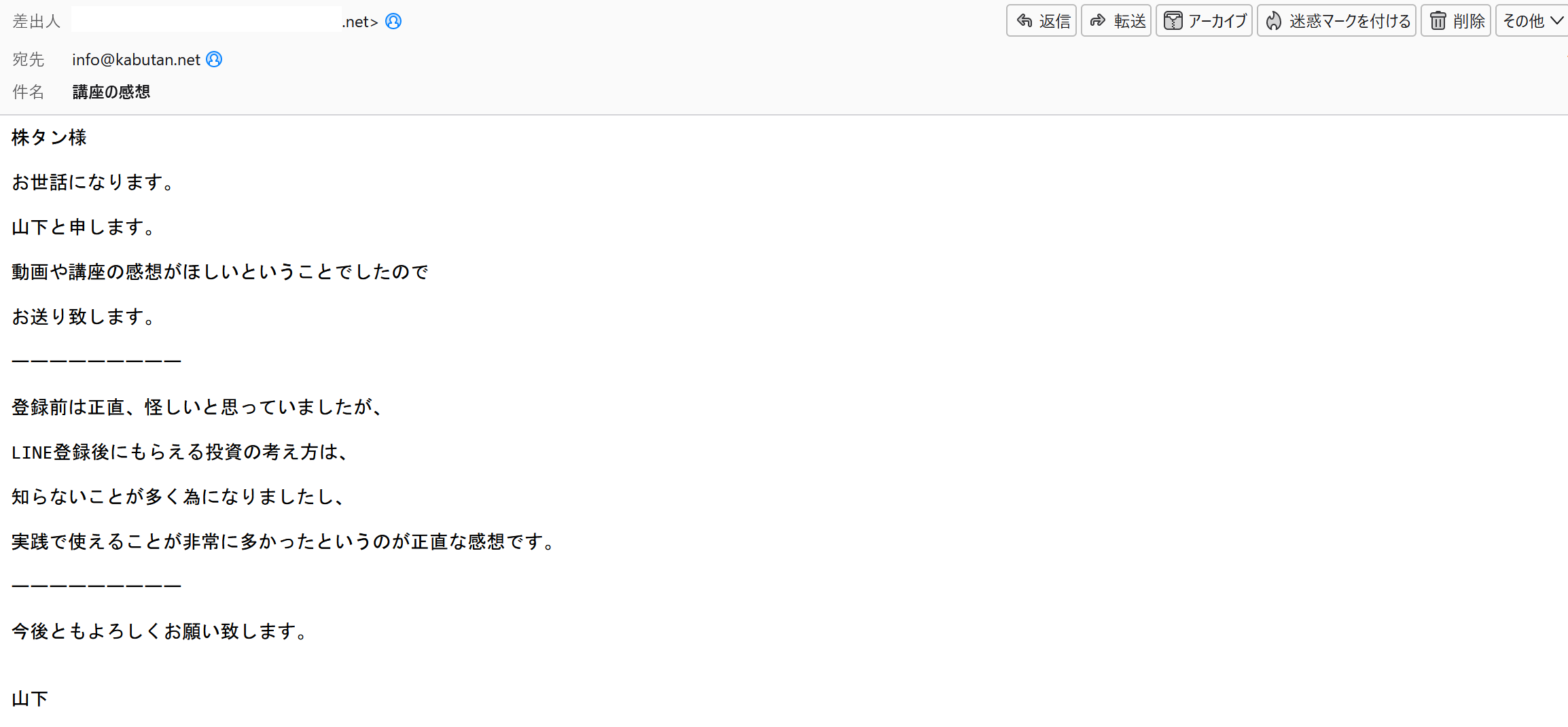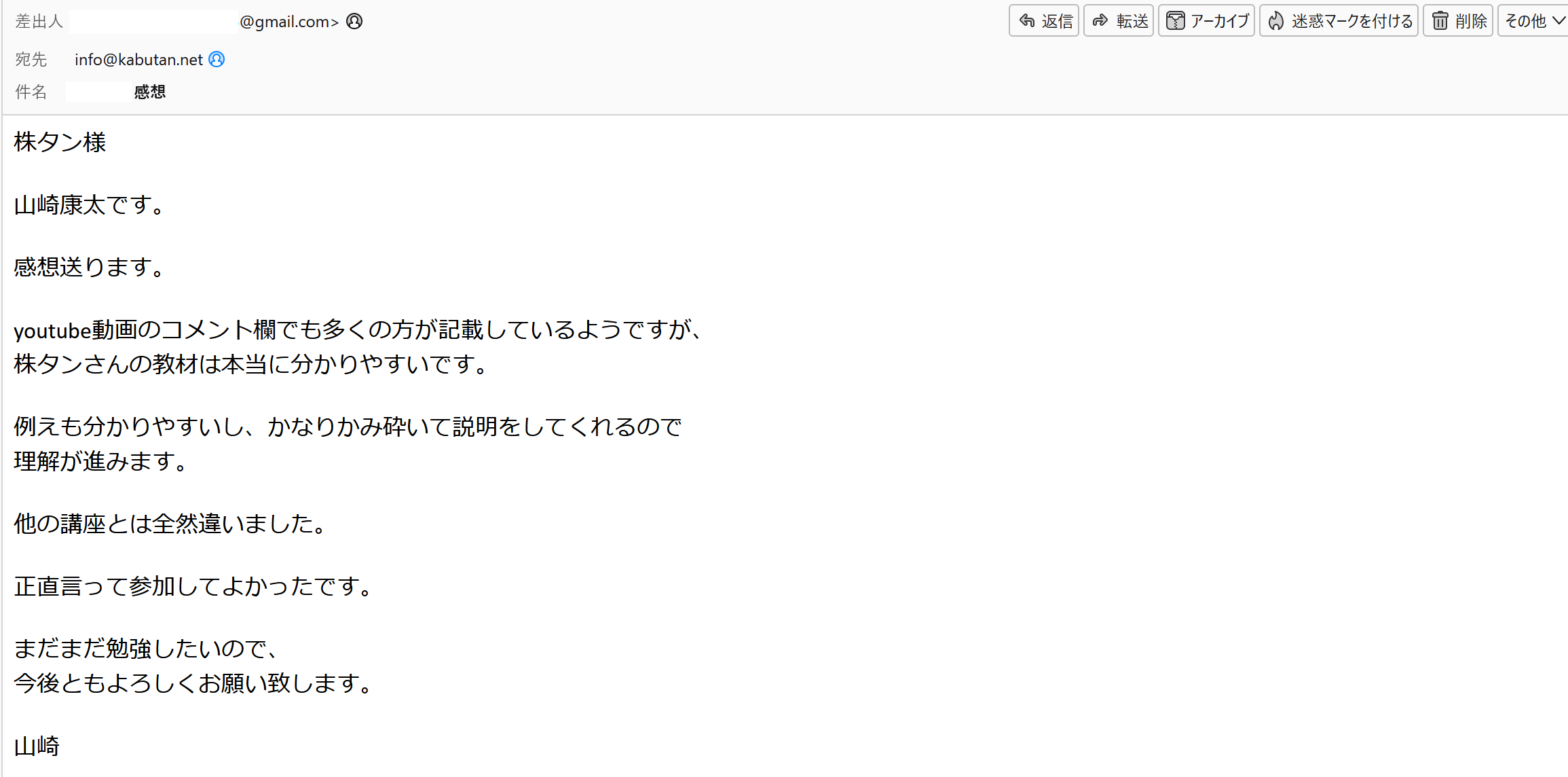 (メールでいただいた感想の一部をご紹介します。)
