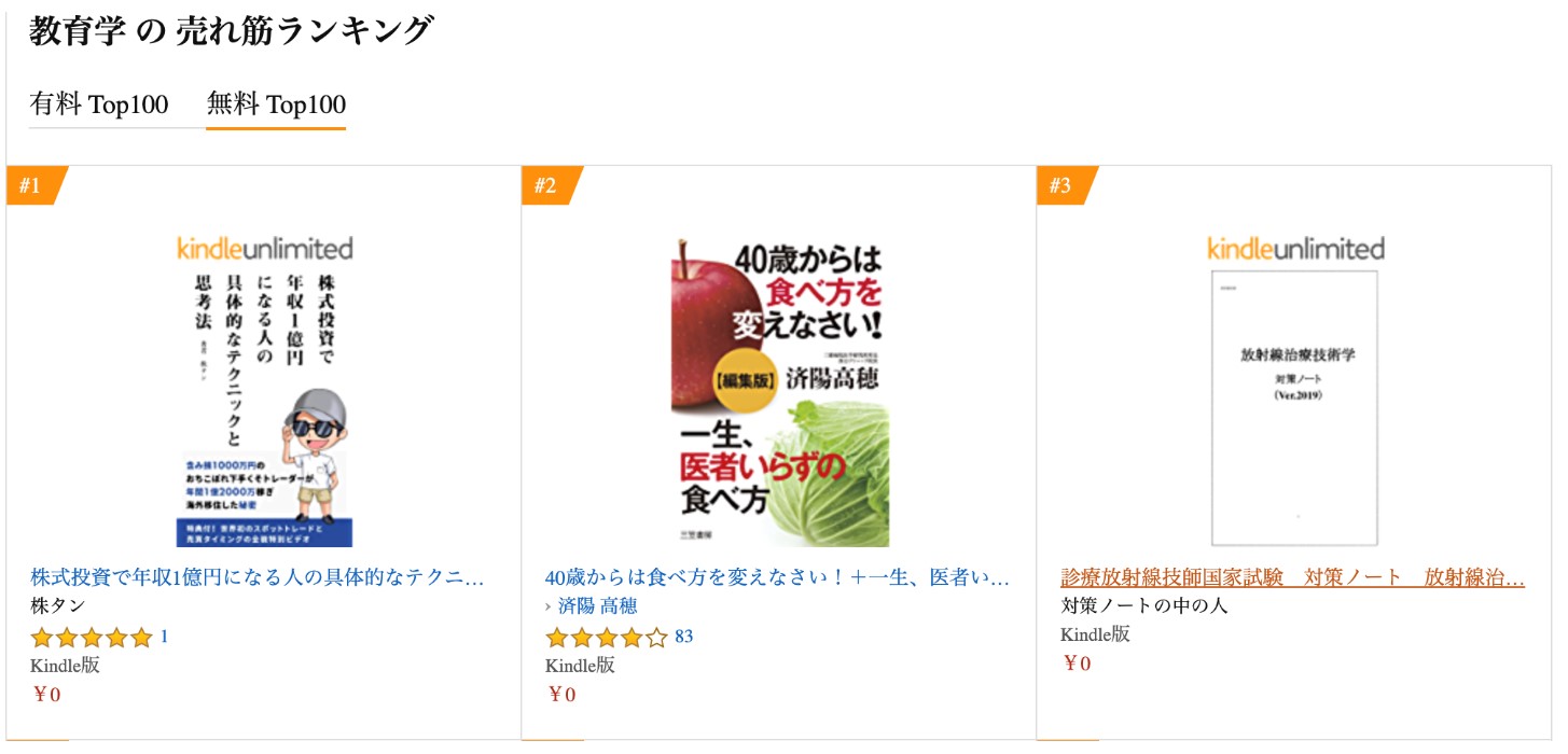 キンドル本も出版を続けていますが、「株式投資」「教育」部門で1位、「ビジネス」部門で2位獲得しました。
